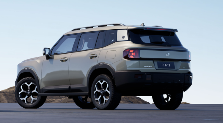 另一邊,同出于奇瑞門下的捷途山海T1,貌似更接近傳統(tǒng)的硬派車型——高大的車身和離地間隙、雄健有力的整車姿態(tài)、挺括的肩線、堅實的體量感,都與史上那些著名的硬派前輩們一脈相承。