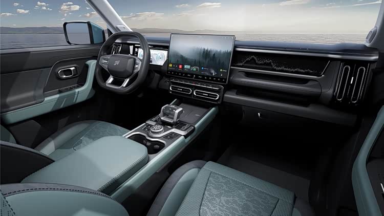 內(nèi)飾也同樣是猛虎與薔薇共舞,粗壯有力的扶手和機甲感十足的方向盤、中控臺可以滿足你對硬派越野的全部幻想,但15.6寸的中控大屏、獨具巧思的“北緯30°地形圖”參數(shù)化裝飾和座椅的數(shù)字面料花紋設計,又讓它不再是“糙漢子”人設,而讓科技與舒適一路同行。