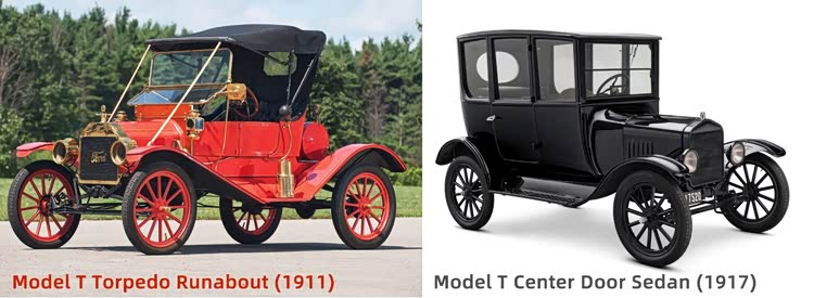 不管是早期相對浮華古典的造型,還是后期工業(yè)化的初代神車,都是馬車車廂+發(fā)動機艙的方盒子堆疊造型。