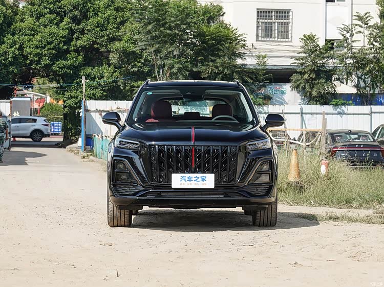 再來具體看一下新車,相比2023款車型,2025款紅旗HS5在外觀及配置上進行了些許改變,超大的中網(wǎng)要遠比同級SUV更顯霸氣,中間的條狀紅旗logo放在玄影版車型上格外顯眼,左右兩側搭配矩形LED頭燈,強悍值拉滿。特別值得一提的是,無論是兩驅還是四驅玄影版車型均采用了20英寸輪轂及25毫米寬度的大寬胎,配合黑化套件盡顯酷炫風格,抓地力也更好一些。車身尺寸方面,2025塊紅旗HS5的長4785mm、寬1905mm、高1700mm,軸距2870mm,典型的中級SUV,比東風本田CR-V略大一些。