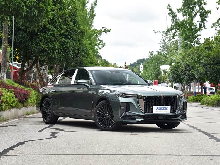 設計細節里也有很多標志性元素,比如前臉是“高山飛瀑”直瀑格柵,貫穿尾燈里集成了可點亮的“北斗之翼”造型,標配輪胎規格為245/45 R19,選裝20英寸輪轂為245/40 R20,帶有紅旗LOGO浮印。此外,解鎖時還有電動吸合門+隱藏式門把手,以及一條5.2米長的“旗幟之翼”迎賓光毯——儀式感很夸張,說白了就是要讓面子溢出來。而且在這個價格段里,連A6L、E級在30萬以內都是最素的銀黑單色,想要有范兒還得花好幾萬選裝。