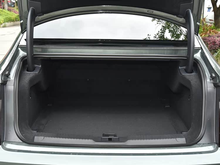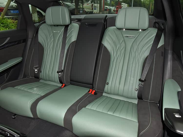 車內的氛圍也很用心,253色氛圍燈,頂棚用 Alcantara 麂皮,后排隱私玻璃,雙層聲學夾層玻璃,后排頭枕里還有獨立揚聲器,支持Center Stage虛擬環繞。最后是實用性方面,后備廂可以并排放4個24寸行李箱,電動后備廂、感應尾門,車內還有PM2.5空氣監測、四溫區自動空調和負離子發生器。如果是家用,這些細節都很舒服;如果是接待/公務用車,也基本能對標高配德系。