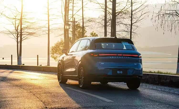 零跑B10以“科技自然美學”為核心設計理念,前臉三段式LED日行燈靈感源于自然界的“引力磁場”,搭配分體式大燈和導流槽造型,融合未來感與運動氣息。車身側面首創“尾跡云腰線”設計,形似飛機尾跡,搭配星芒運動輪轂,強化動態視覺效果。
