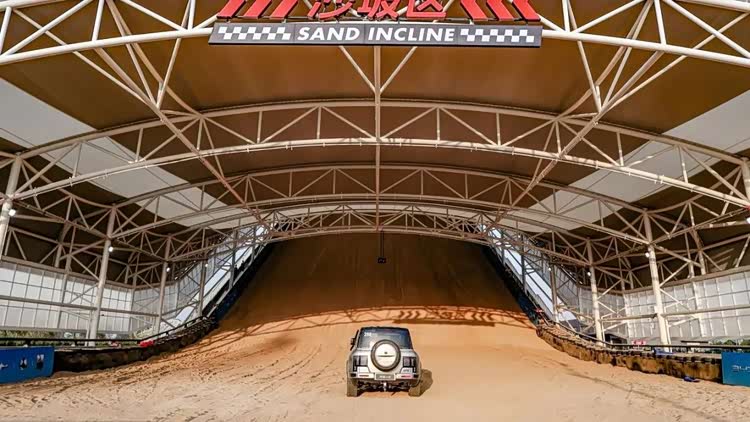 除了上演激情與速度的賽道,賽車場還設計有多功能體驗區。場地占地面積15300㎡,設置標準繞樁、智能泊車、AEB、魚鉤測試、麋鹿測試等十幾種場景,全方位展現比亞迪智能化技術魅力。27 個越野項目更精準復刻川藏公路、成佛坡等全國 “越野圣地” 精髓,從入門到高階全覆蓋,讓城市 SUV 也能借智能四驅在初級路段展現從容通過性。