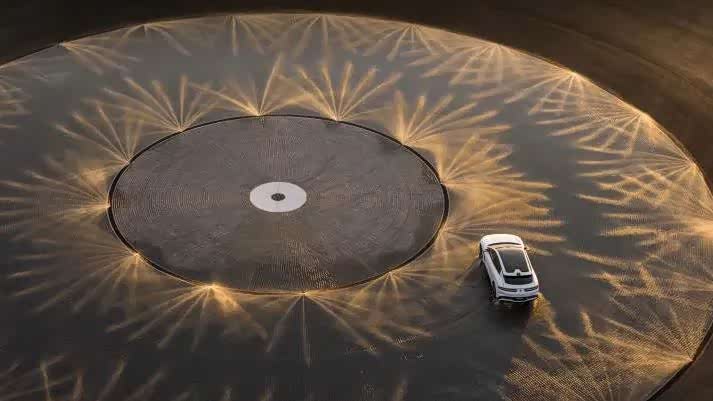 更有體驗漂移的專業場地,這是一條國內首創的 44 米直徑低摩擦環形道,采用3萬多塊玄武巖磚拼接,配合 3mm 均勻水膜控制系統,摩擦系數介于冰面與雪地之間。
