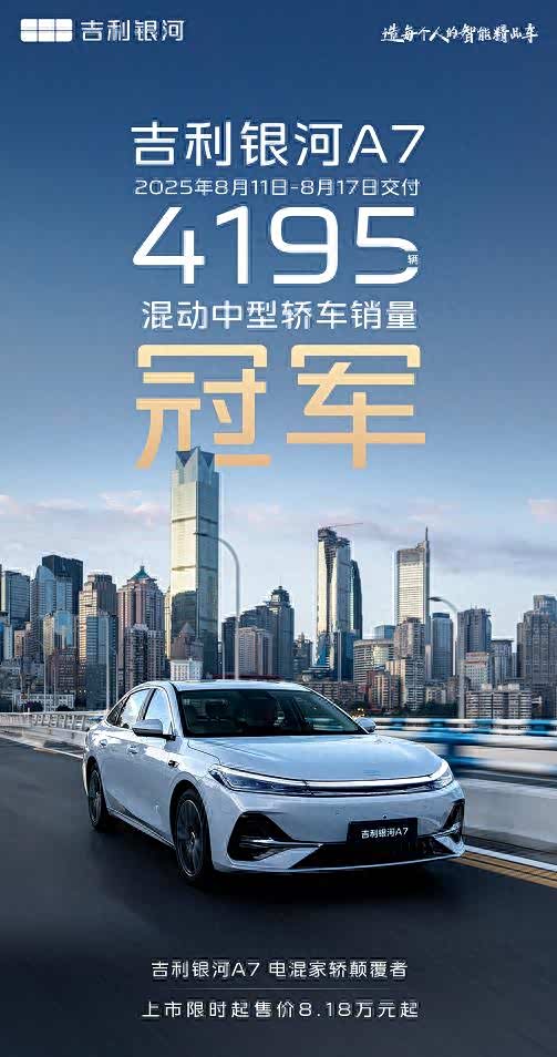 吉利銀河 A7 自上市以來,熱度持續(xù)飆升,上市首周交付量便高達 4195 輛,一舉奪得混動中型車全品類銷量冠軍寶座。那么,這款起售價僅 8.18 萬元的電混家轎,究竟有著怎樣的魅力,能在短時間內(nèi)贏得眾多消費者的青睞呢?
