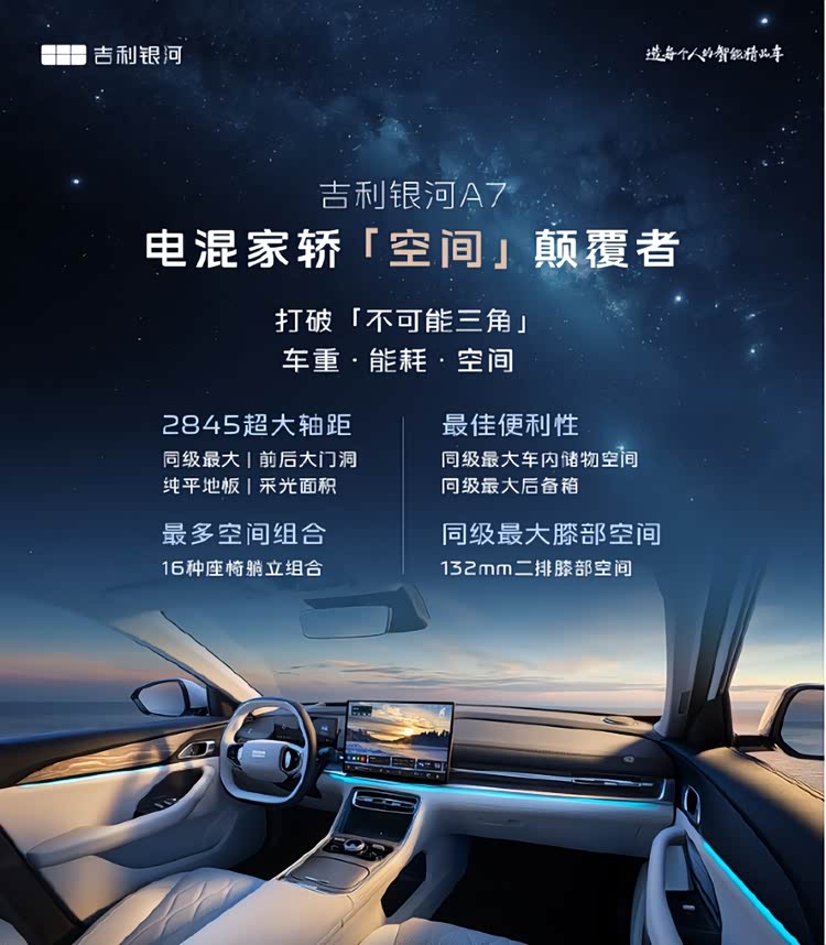 空間上,吉利銀河 A7 更是展現(xiàn)出越級優(yōu)勢。2845mm 的軸距與 4918mm 的車長,打造出同級領(lǐng)先的車內(nèi)空間。后排擁有 950mm 的腿部空間,配合純平地板設(shè)計,即使身高 180cm 的乘客也能舒適乘坐。全車設(shè)有 28 處儲物空間,后備箱容積可擴展至 988L,無論是家庭日常出行,還是攜帶大量裝備進行長途旅行,都能輕松應對,完美契合家庭用戶的實際需求。