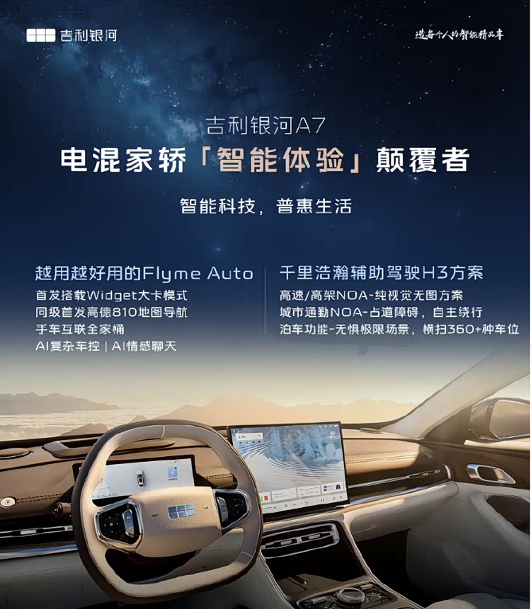 在智能體驗方面,吉利銀河 A7 同樣表現(xiàn)出色。其配備的千里浩瀚輔助駕駛 H3 方案,依托 11 個攝像頭、3 個毫米波雷達以及大算力芯片,能夠?qū)崿F(xiàn)高速 NOA 領(lǐng)航與自動泊車等功能,為用戶帶來更加便捷、安全的駕駛體驗。Flyme Auto 智能座艙則以 23.5 EFLOPS 算力中心為強大支撐,具備語音盲操、可視化車道引導等實用功能,極大地提升了人機交互的效率。