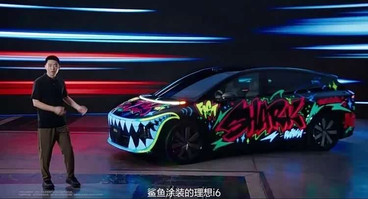 發(fā)布會上,李想還親自揭曉了一款“鯊魚涂裝”的i6。是的,過去路上的理想涂裝有玲娜貝兒、冰雪奇緣、小豬佩奇……但如此涂鴉風(fēng)的理想,還是官方版,恐怕是頭一遭。