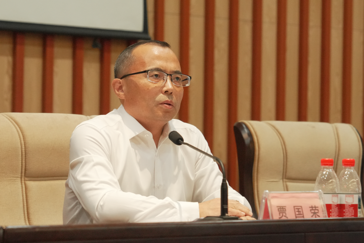 公司董事長賈國榮、總經理顧萃等領導班子成員及全體員工參加會議。