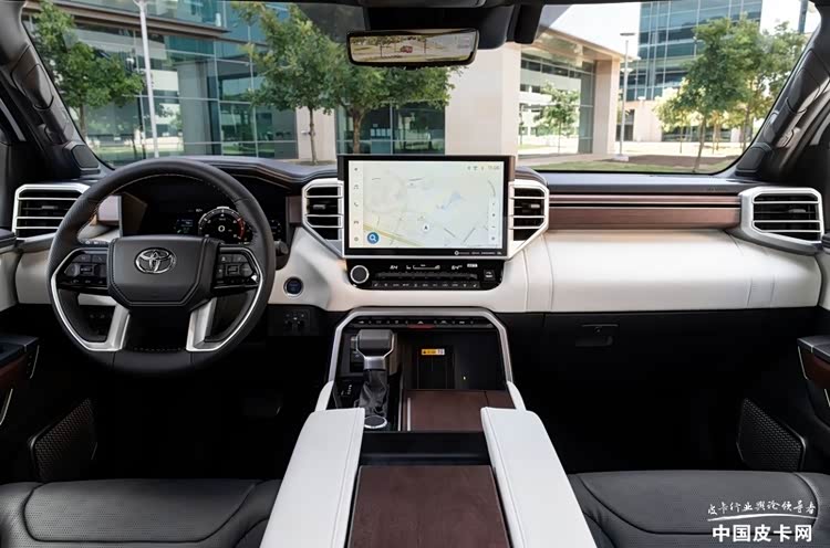 在整個豐田的皮卡產品系列中,坦途Capstone被海外媒體稱為最接近雷克薩斯皮卡的車型,其內飾豪華程度不輸奔馳等老牌豪華廠商。該車的官方指導價約8.3萬美元(59.1萬元人民幣)。與其他車型相比,它配備了具備按摩、加熱和通風功能的真皮座椅、深色美國胡桃木開孔木飾條,并且車內其他所有的覆蓋件均采用柔軟觸感材質,此外還配備了HUD抬頭顯示器、全景天窗和14 英寸大觸摸屏等。并且由于該車是唯一一款采用隔音夾層前玻璃的 坦途(參數|詢價)車型,所以其車內也要更加安靜,搭配上夜間氛圍燈,讓該車在整體駕乘體驗上可以與雷克薩斯的LX系列所媲美。
