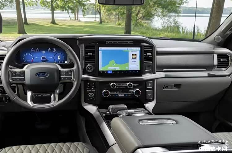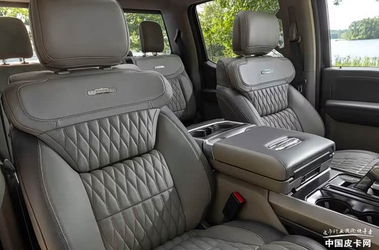 在配置方面,F-150鉑金版配備了多級可調的按摩式真皮座椅、真皮儀表盤、抬頭顯示系統以及巨大的分段式天幕。并且還配備了來自B&O 的14揚聲器音響系統。此外,該車也配備了來自福特的BlueCruise續航系統,在高速路段可以實現更為高級的駕駛輔助功能。