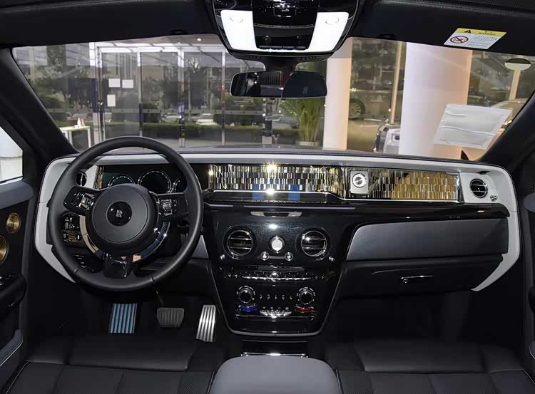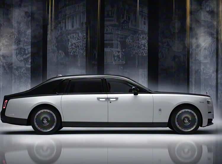 從發布的官方圖片來看,勞斯萊斯幻影“百年華誕”車身造型尤為方正、復古,并采用了經典的雙拼色車漆涂裝(上半部分是黑色、中間部分是銀灰色、下半部分又是黑色),顯得十分特別。配備了對開式的商務車門設計,并配有迎賓大燈照射系統。配備了22英寸的大餅輪圈,每個輪圈都有25根條輻,向這限量的25臺車致敬,同時四個車輪加起來,正好是100條,慶祝百年華誕。尺寸上,幻影的長寬高分別為5770*2020*1648mm,軸距3552mm,是一款4門5座的大型行政級豪車。