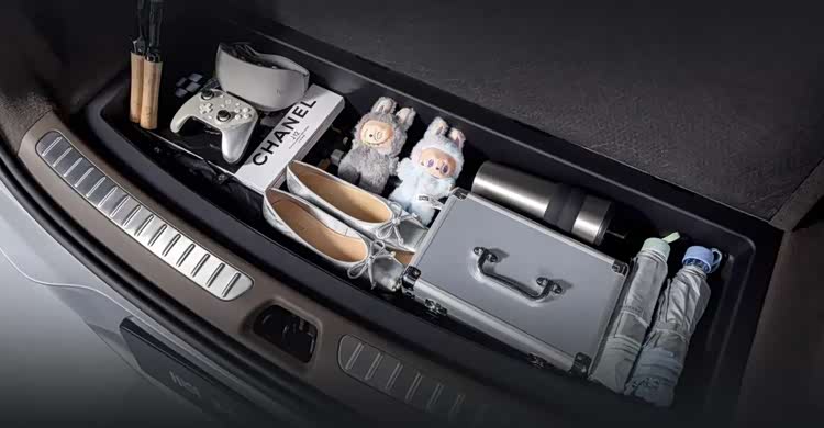 更貼心的是那些細節:解鎖時,車身會自動下降5厘米,離地間隙僅剩11.5厘米。這個動作看似簡單,卻讓老人和孩子上下車從容了許多。車上49處收納空間和一個51L的后備廂隱藏儲物盒,解決的也不是“能不能裝”的問題,而是“零碎物品能否收拾得體面”的生活瑣碎。在這里,空間不再是冰冷的幾何容器,而是一個懂得照顧人的“移動大平層”。