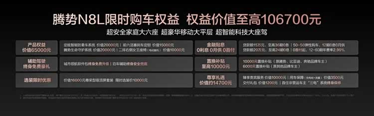 在駕控和安全層面,騰勢N8L保留了騰勢品牌一貫的技術底氣。全系標配的“易三方”平臺、3.9秒的破百能力、4.58米的最小轉彎半徑(這讓它比很多小車還靈活),以及2000MPa熱成型鋼和9個安全氣囊構建的“金剛鐵骨”,所有這些硬核配置,共同構成了一個可靠的技術基座。