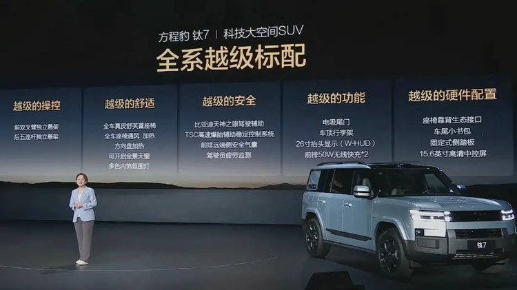 鈦7如今的身份也就變成了,不論從任何角度來拼產品力,它都是獨特且領先的。日用方面,是同價位里的技術強者,家用方面,是有趣的科技出行空間,越野以及使用拓展方面,它是新物種。