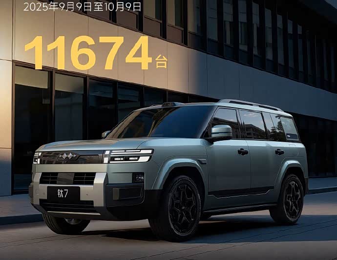 在拼殺最激烈的價格區間,殺出這樣的成績單,已經很嚇人。但最新的方程豹鈦7更嚇人,2025年9月9日上市至10月9日,累計銷量已經來到了11674輛。截止目前最新消息,鈦7累計銷量已突破2萬輛。