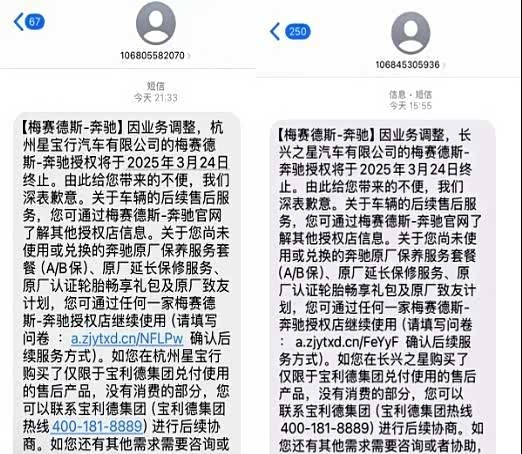 更絕的是,奔馳發來短信說授權終止,讓他去別的店做保養。