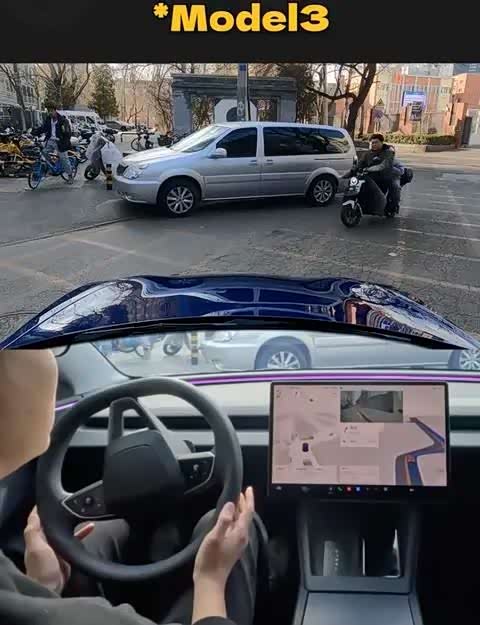 特斯拉Model 3:雖為老牌強者,但在特定環境下表現欠佳。特斯拉的FSD在國外表現卓越,但在國內駕駛時,尤其在環島路段,其短板便顯露無遺。在實際測試中,Model 3能夠精準識別車道線和車輛,但在面對不守規矩的加塞車輛時,其反應顯得過于機械,不是急剎車就是無法做出適應性的移動,導致被后方車輛催促。更令人尷尬的是,在遇到突然橫穿的送外賣電動車時,自動駕駛系統甚至會直接退出智能駕駛模式,要求駕駛員立即接管車輛。