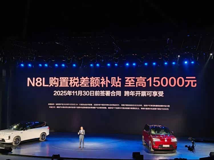 但是騰勢(shì)N8L提前給大家吃了顆“定心丸”,只要在11月30日24點(diǎn)前完成合同簽署的用戶,如果因非用戶原因車輛未及時(shí)交付,導(dǎo)致開票實(shí)際發(fā)生在2026年的話,騰勢(shì)提供最高1.5萬元的購(gòu)置稅差額補(bǔ)貼。