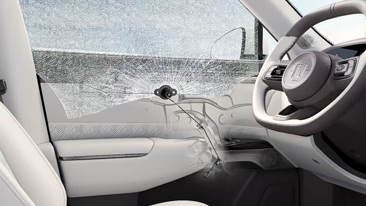 值得一提的是,區(qū)別于普通雙層夾膠玻璃,煥新極氪7X采用外層3.5mm鋼化玻璃+0.76mmPVB膠膜+ 內(nèi)層1.1mm鋼化玻璃的設(shè)計(jì),表層壓應(yīng)力和內(nèi)部張應(yīng)力形成力學(xué)平衡,主駕安全破窗器可以輕松擊穿。