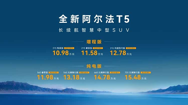 在保證充沛動力輸出的同時,全新阿爾法T5的WLTC百公里饋電油耗僅5.18L,百公里電耗16.5度,CLTC綜合續航達到1215公里。