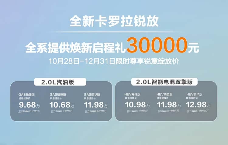 起售價(jià)下調(diào)3000元,新款豐田卡羅拉銳放12.68萬元