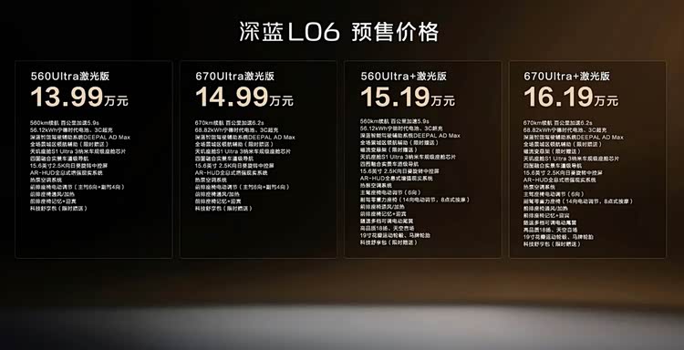 10月30日,長安汽車新能源板塊核心品牌深藍汽車,正式開啟全新車型 深藍L06(參數|詢價)的預售,售價13.99-16.19萬元。作為定位“長續航磁流變激光智能轎跑”的新車,深藍L06把300萬級超跑的磁流變懸架、特斯拉同源智駕算法、手機級3nm座艙芯片,裝進了年輕人觸手可及的價格區間,徹底打破“入門轎跑=配置閹割”的行業慣例。
