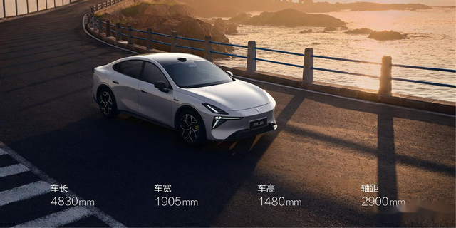 車身尺寸方面,新車長寬高分別為 4830/1905/1480mm,軸距達 2900mm,在中型車市場中具備空間優勢。車尾的電動擾流板可隨車速自動開啟或關閉,配合大尺寸擴散器,不僅提升了空氣動力學性能,更增強了運動氛圍,高速行駛時能提供超過 200N 的下壓力。外觀提供蒼穹黑、月輝白等五種基礎配色及三種官改車衣選擇,滿足年輕用戶個性化需求。