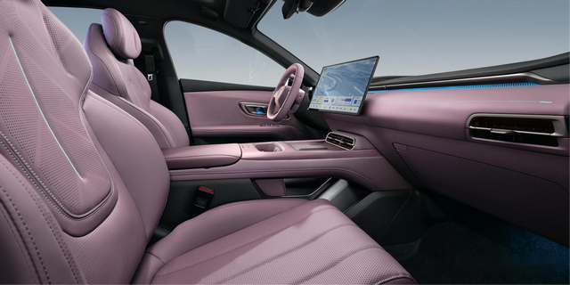 內飾延續家族極簡風格,90% 以上面積采用軟質包覆,觸感溫潤。15.6 英寸向日葵中控屏可左右轉動,搭配懷擋式換擋機構與 AR-HUD 抬頭顯示,構建出科技感十足的交互場景。配置上,副駕零重力座椅、256 色氛圍燈、前排座椅通風加熱、全景天幕、手機無線充電等豪華配置一應俱全,加寬升級的座椅側翼更提升了乘坐舒適性。