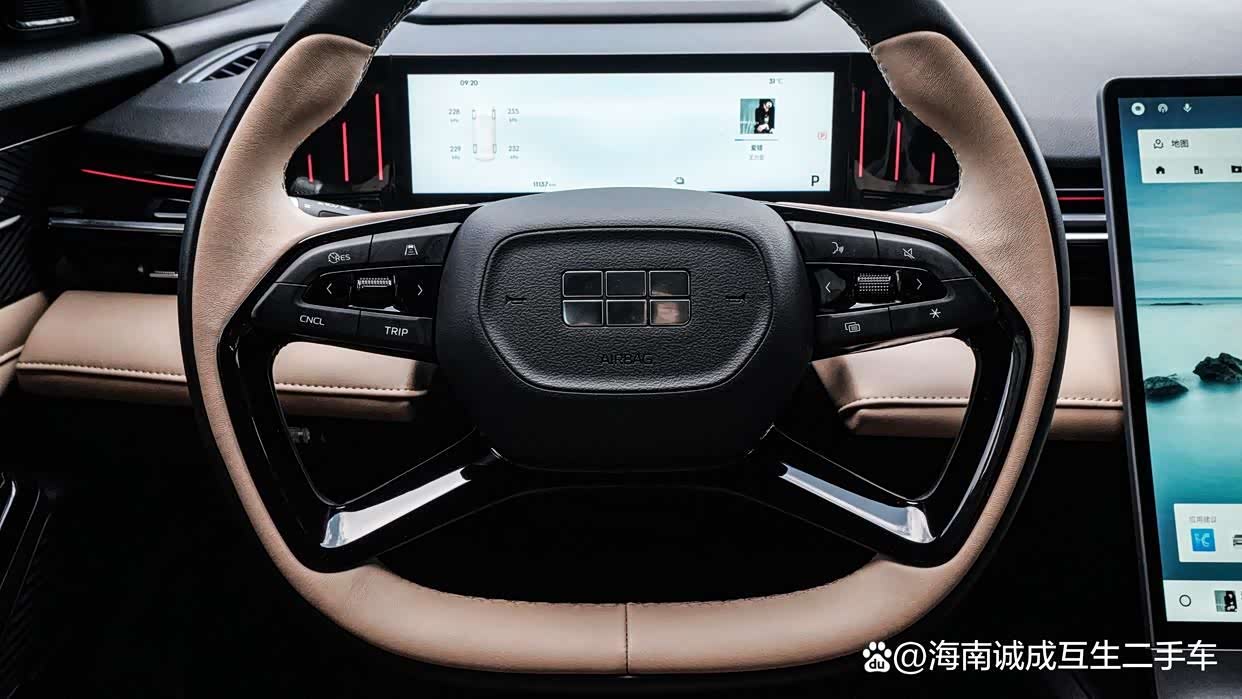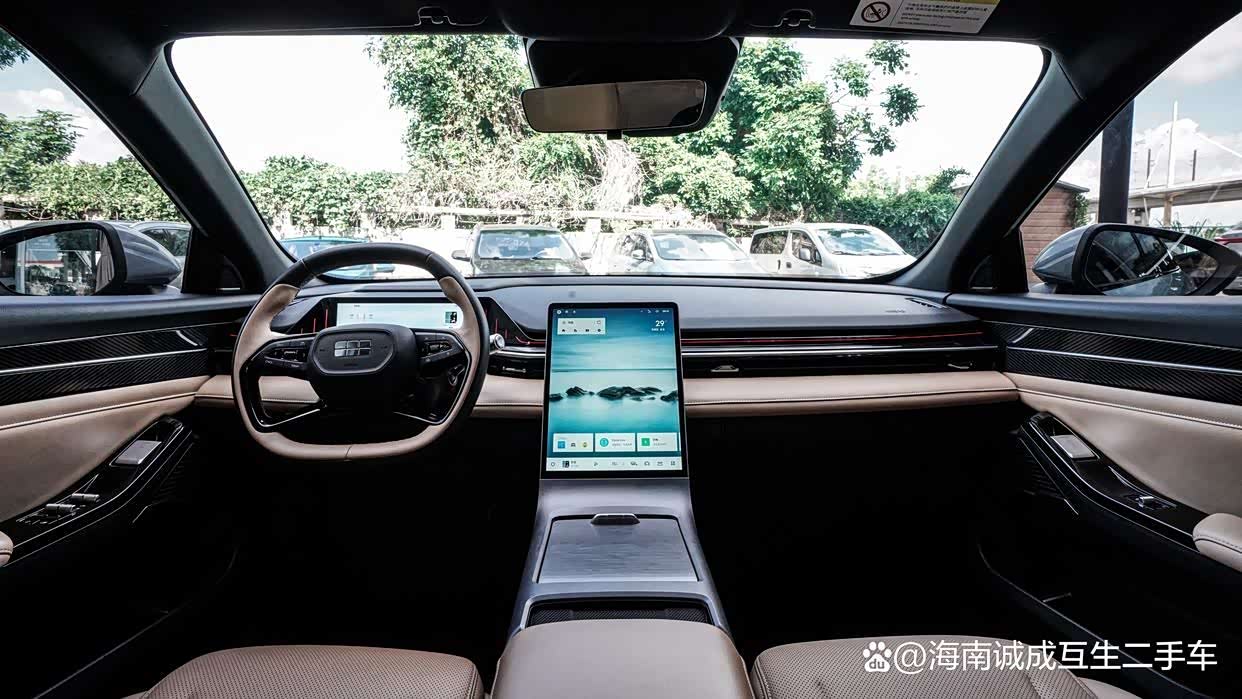 內飾以簡約科技為主題,車內采用軟性材料包裹,鋼琴烤漆飾板與磨砂工藝交替應用,提升質感的同時減少指紋困擾,車內還加入木紋裝飾點綴,做工精致顯得很上檔次,提升座艙的質感。四輻式方向盤造型美觀、握姿舒適,“天穹琴弦”雙境穹頂天幕既滿足了車內采光和仰望星空的需求,還有效遮光隔熱,填充柔軟的棉花糖記憶座椅雙分區記憶海綿填充,靠墊實現零壓包裹感。