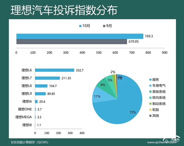 汽車質量投訴點評:近兩個月來,理想汽車的擺臂異響投訴聲量在逐漸降低,進而投訴指數也在緩慢下降。剛剛過去的10月份,理想的投訴指數又有所抬頭。從投訴反饋來看,10月份,理想的下擺臂異響問題幾近偃旗息鼓,單新車降價遭到了車主的集體吐槽。不久前,理想調整了銷售政策,多款車型不同幅度變相降價。此舉引發了老車主的不滿。