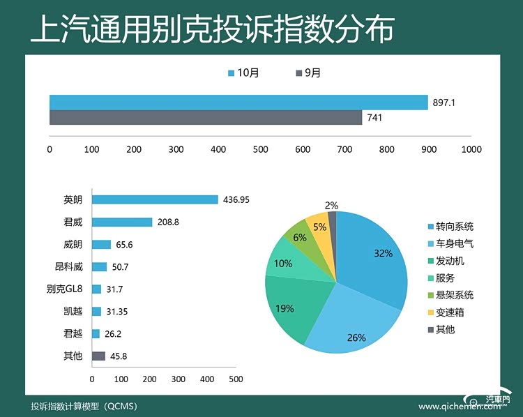 汽車質量投訴點評:10月,上汽通用別克超過長安汽車沖上投訴榜眼位置。與比亞迪相反,10月上汽通用別克延續了近幾個月來投訴指數上升的趨勢,環比9月上漲了兩成。然而,上汽通用本月并未出現新的集中投訴。投訴指數之所以上漲,是因為轉向卡滯異響和燃油泵故障等老問題的投訴比9月份都有所上升。英朗成了最大的投訴爆發點,君威同樣遭到了很多老車主的吐槽。