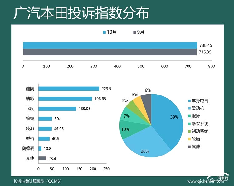汽車質量投訴點評:本月,廣汽本田的投訴指數依舊穩定運行。而且10月份,廣汽本田也未出現新的集中投訴。不過,其“痼疾”同樣不讓用戶省心。從投訴反饋看,廣汽本田的投訴仍集中于發動機異響、遮陽簾卡扣斷裂和懸架吃胎偏磨三大問題。問題分別集中出現在飛度、皓影和雅閣之上。其中,飛度發動機異響和雅閣懸架吃胎偏磨由來已久,皓影遮陽簾卡口斷裂也持續了兩三年,但這幾個問題一直未能解決。