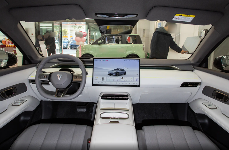 內飾看起來也相比之前的深藍車型更加簡約一些,特別是整個臺面完全采用了懸浮窄邊框大屏幕,幾乎取消掉了所有的傳統按鈕,而且多功能方向盤上也是比較流行的滾輪設計。15.6英寸的大屏幕也是現在的主流,只是在副駕駛一側并沒有提供單獨的大電視。