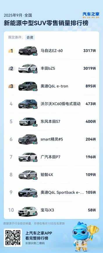 作為凝聚馬自達(dá)百年造車(chē)積淀的全球化車(chē)型,MAZDA EZ-60 以 11.99 萬(wàn)元 - 16.09 萬(wàn)元的官方指導(dǎo)價(jià),精準(zhǔn)覆蓋 15 萬(wàn)級(jí)主流消費(fèi)市場(chǎng)。新車(chē)不僅斬獲繆斯設(shè)計(jì)獎(jiǎng)?鉑金獎(jiǎng)與 “2025 中國(guó)十佳車(chē)身”“最佳材料獎(jiǎng)”“TOP Safety” 頂級(jí)安全認(rèn)證四重榮譽(yù),更憑借上市 4 天銷(xiāo)量 3317 輛的成績(jī),登頂 2025 年 9 月合資新能源中型 SUV 零售銷(xiāo)量排行榜第一,實(shí)力碾壓 CR-V 插混、豐田 BZ5 等合資對(duì)手,成為市場(chǎng)公認(rèn)的 “時(shí)代好車(chē)”。為此,在此次盛典當(dāng)中長(zhǎng)安馬自達(dá)宣布,新車(chē)上市購(gòu)車(chē)權(quán)益將延續(xù)至12月31日。