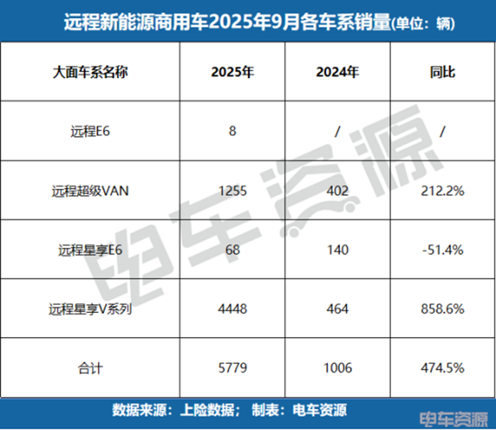 根據(jù)電車資源統(tǒng)計,大面車型的爆發(fā)并非單一產(chǎn)品驅(qū)動,而是形成了多點支撐的產(chǎn)品矩陣。以遠程V7E為代表的遠程星享V系列表現(xiàn)最為搶眼,2025年9月銷量達4448臺,同比增幅高達858.6%,成為大面市場的爆款標(biāo)桿; 遠程超級VAN(參數(shù)|詢價)同樣勢頭迅猛,從402臺增長至1255臺,同比增長212.2%。