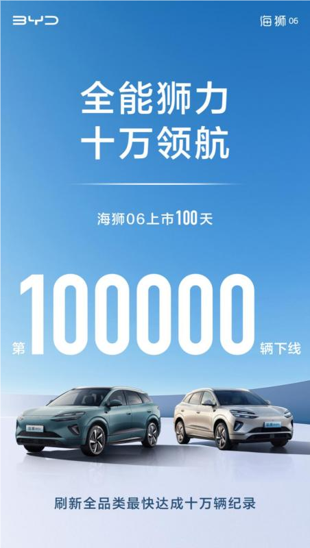 近日,比亞迪海洋網旗下“高能超享SUV”海獅06在上市第一百天,正式迎來第十萬輛整車下線。這一里程碑的達成,標志著海獅06成為全品類車型最快突破十萬輛的現象級產品。