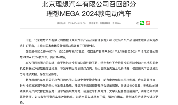 于是,當機立斷。理想主動召回MEGA著火事故同批次車。