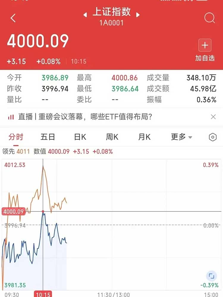 近日,上證指數(shù)盤中沖破4000點,這是自2015年8月19日以來首次重回這一關口。最高沖至4025點,創(chuàng)下10年新高。甚至,有投資者激動地寫道,“淚目,十年,4000點。”