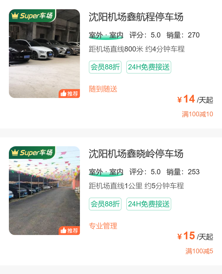 更多停車場的細節,可以用淘車位小程序來查看,上面會詳細展示各個停車場的收費標準、環境照片、位置、離機場有多遠等等。另外,這些停車場還會提供免費接送車,接送旅客往返航站樓。