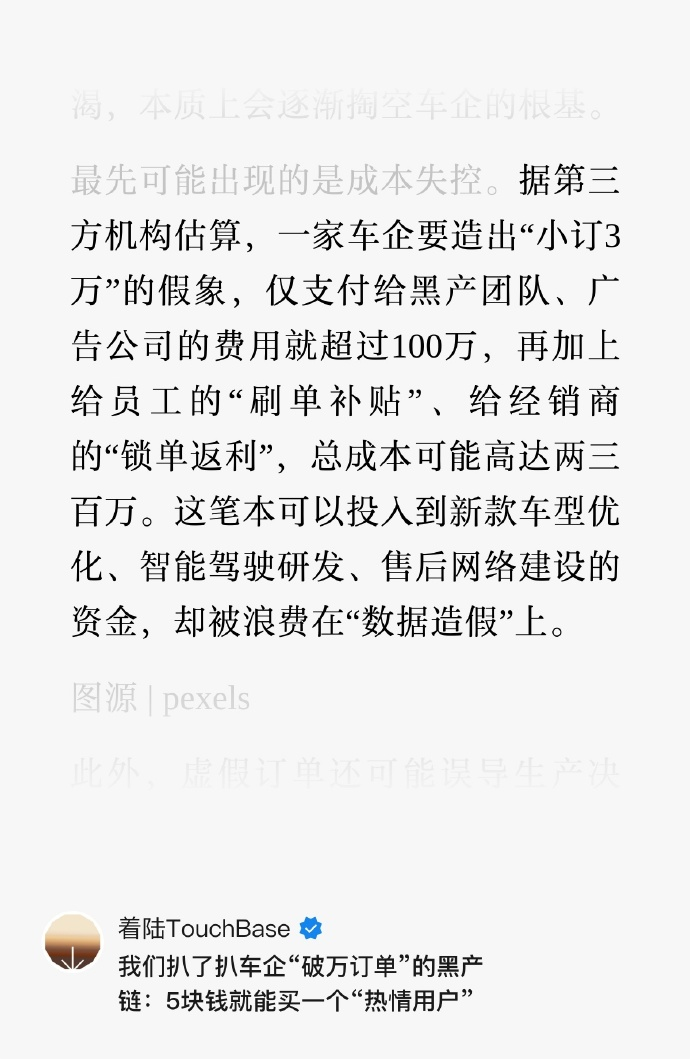 車家號·0瀏覽·2025-11-03 17:04 · 安徽11月3日,知名汽車博主孫少軍轉發(fā)一則關于車企小訂單造假的資訊,并詳解了汽車刷單方法和成本。