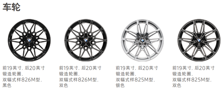 輪轂方面,標配826M 黑色,可以0元選裝826M 雙色,還可以3500元選裝825M(銀色或雙色)。