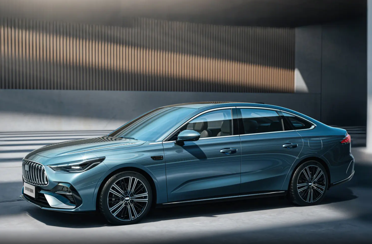而且車身側面看也是很標準很傳統的三廂轎車線條,而且沒有使用隱藏門把手的設計,但不可否認這款廉價車型在用料方面還是不錯的,至少低價路線的情況下還是提供了大量的側面鍍鉻裝飾條。尾部細節上貫穿尾燈看起來也并不廉價。