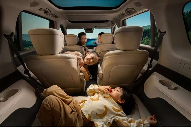 比如語(yǔ)音一鍵成床功能,便是一個(gè)貼心的設(shè)計(jì)。想象在長(zhǎng)途疲憊駕駛后,只需一句指令,車內(nèi)便悄然化作一張舒適的1.8米雙人床。配合覆蓋全車的5G網(wǎng)絡(luò)與獨(dú)立溫區(qū)空調(diào),無論是在高速服務(wù)區(qū)短暫休整,還是在郊外營(yíng)地安營(yíng)扎寨,它都能瞬間為您提供一個(gè)溫暖、自在的私密空間。