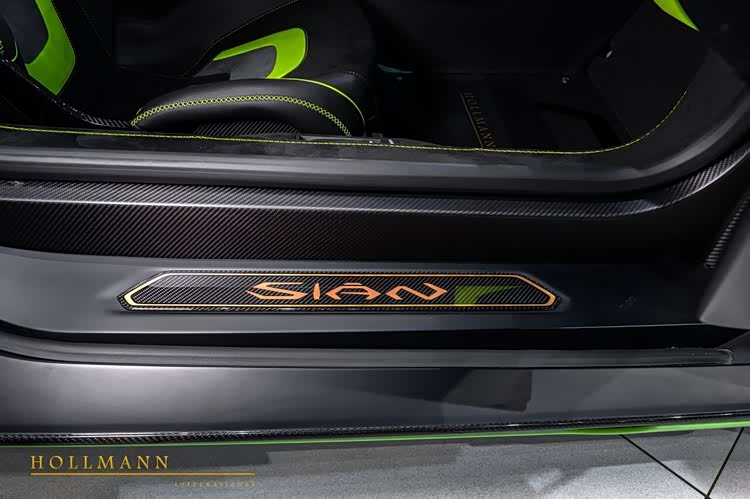 近期,一臺行駛里程僅 75英里(約120公里) 的Sian FKP 37在德國再次掛牌出售,報價 327.25萬歐元(約合人民幣2670萬元)。這臺車采用碳纖維外觀,輔以熒光綠色細節(jié),與“Nero Ade + Verde Scandal”內(nèi)飾形成呼應(yīng)。賣家為其配備了總價超過 36萬歐元 的選裝套件,包括全碳纖維外觀組件(30萬歐元)以及漸變熒光涂裝(6萬歐元)。