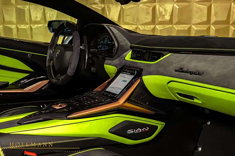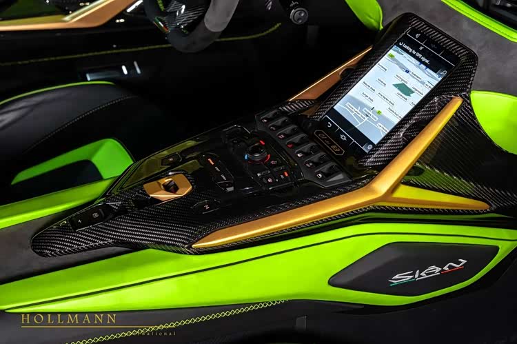 這套系統(tǒng)與一臺來自 Aventador SVJ 的 6.5升自然吸氣V12發(fā)動機協(xié)同工作,綜合輸出達 819馬力,峰值扭矩 720牛·米。傳動系統(tǒng)仍是那臺熟悉的七速ISR自動變速箱,動力經(jīng)電子控制的四驅(qū)系統(tǒng)輸出。官方數(shù)據(jù)顯示,Sian 0–100公里/小時加速僅需 2.8秒,最高時速可達 355公里/小時。