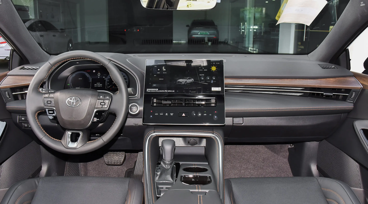 來到內飾,亞洲龍為了烘托外觀的商務屬性,內飾在用料下也是誠意十足,最顯眼的設計就是中控臺的木紋飾板,或許在老板眼里,只有木紋飾板才能烘托豪華感,但在年輕人眼里,木紋飾板顯得老氣許多。但它下方的空調出風口采用線條設計,我覺得設計感挺好的。搭配的多功能方向盤也是皮革包裹,座椅除了皮革包裹還帶紅色縫線工藝,同時也保留部分實體按鍵和經典檔把,這樣是80后最愛的設計。科技上配有12.3英寸的中控屏,下方是10.25英寸的空調觸屏,所以屏幕看起來和平板一樣大,液晶儀表是12.3英寸,車機還給到你8155芯片,經過OTA升級后系統更流暢,語音交互也得到提升。