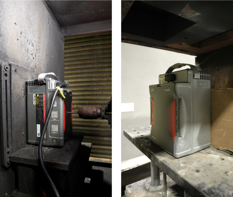 更貼近實際使用場景的測試還有很多。模擬車輛碰撞的沖擊測試,對電池6個方向施加150g的最大加速度,還要承受18+次機械沖擊,要知道國標只要求6次;他們還會模擬劇烈碰撞的擠壓測試,多角度施加50KN的擠壓力,讓電池形變量達到70%,依舊不起火;想做通勤神器,防水必不可少,新能安的防水測試,直接把電池包浸在1米深的水下。