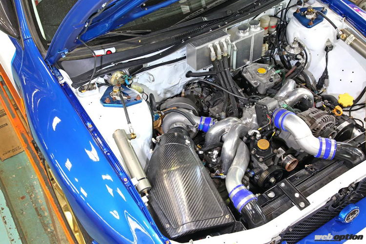 動力系統(tǒng)方面,發(fā)動機更換為GDB EJ20,使其更適合城市駕駛。而且安裝位置已降低,以避免變速箱和中央通道之間的干擾。碳纖維空氣濾清器則是來自WRC拉力賽車,并安裝了電子控制油門,而高度可調(diào)懸架的獨立油箱固定在左右支柱塔的前部。